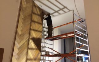 In Antwerpen hebben wij voor Floris van Bommel een nieuwe Merbau visgraat gemaakt. Zoals te zien is op de foto’s kan de vloer ook gewoon aan de wand gemaakt worden.